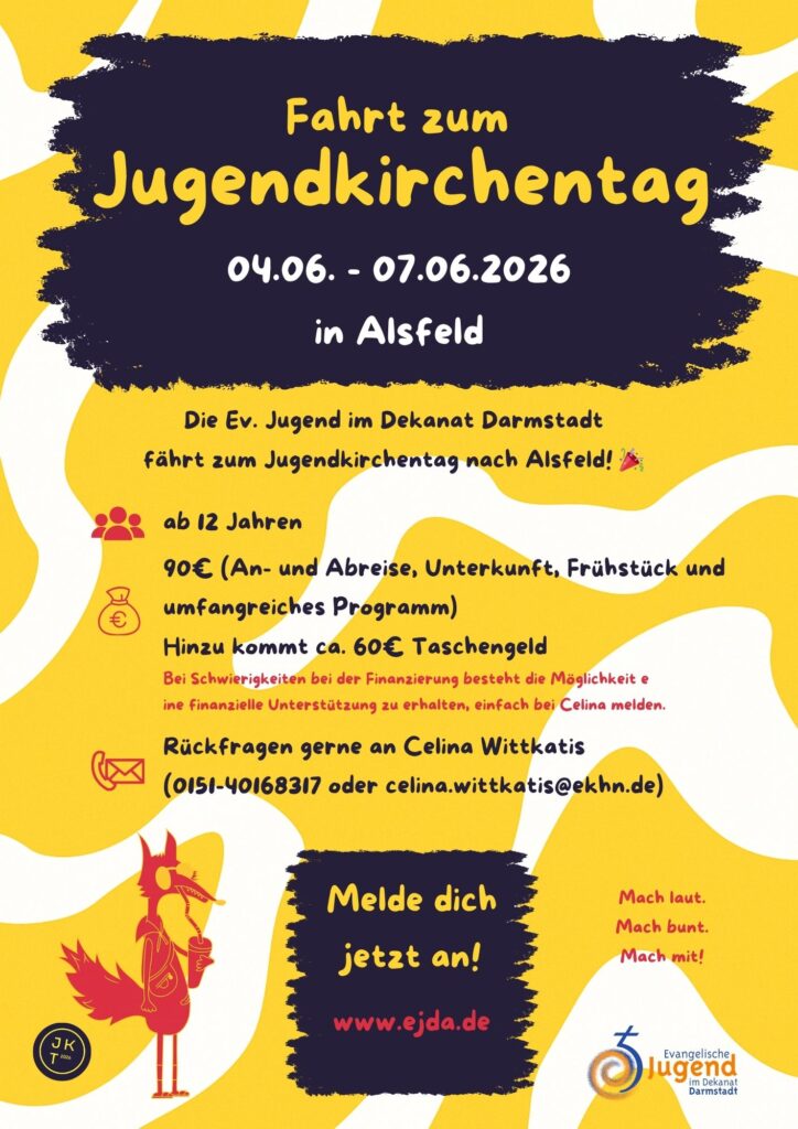 Über Fronleichnam 2026 findet der Jugendkirchentag in Alsfeld statt und die Ev. Jugend im Dekanat Darmstadt fährt zusammen dorthin!